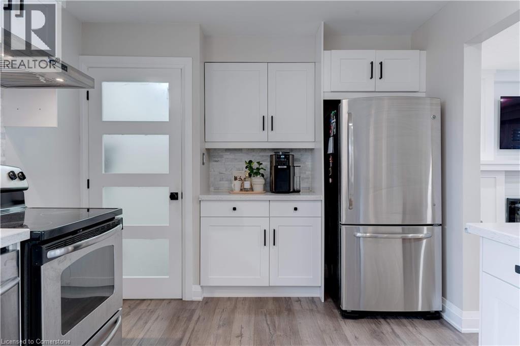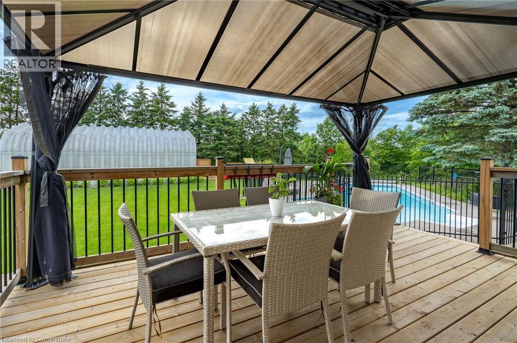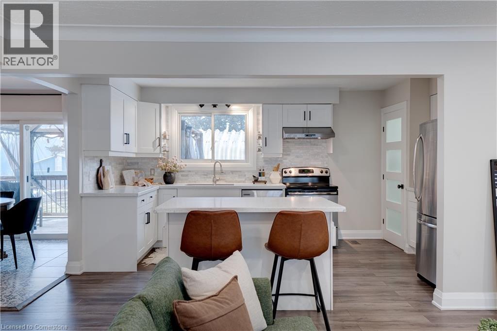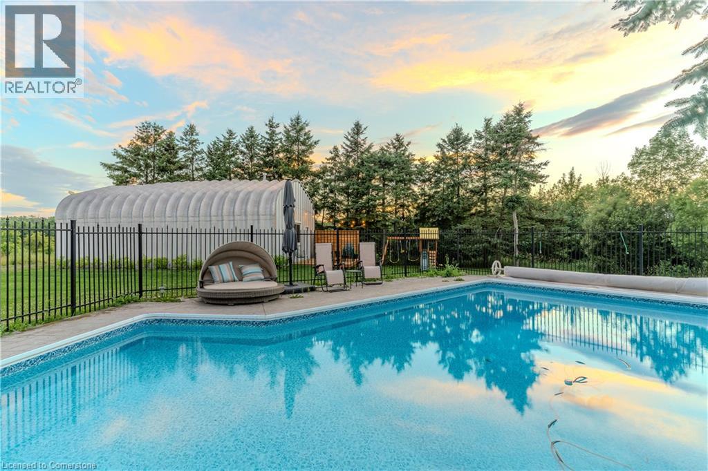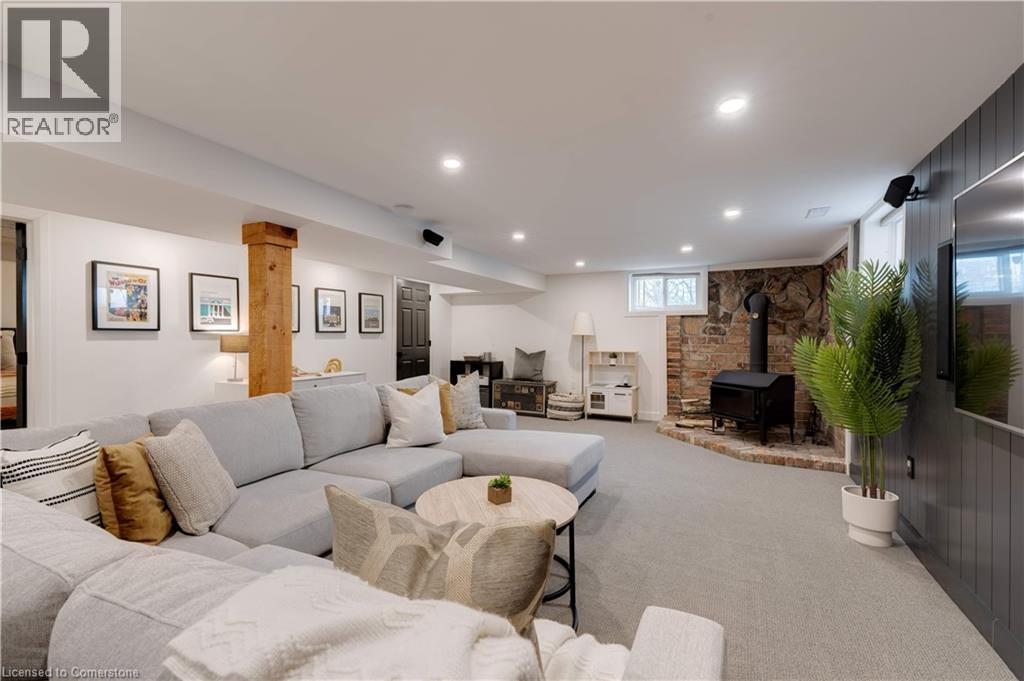 If you’ve been dreaming of quiet country living with stunning sunsets and room to roam, this charming rural retreat in Grimsby offers the best of that lifestyle—without the upkeep of an oversized home. Set on a private 200-foot deep lot, this beautifully updated 4 bedroom, 2.5 bath brick bungalow is the perfect blend of cozy comfort and outdoor freedom. Thoughtfully designed to make the most of every square foot, the home's layout prioritizes functionality, flow, and modern style. A crisp white kitchen with quartz counters, a breakfast island, and minibar fridge opens to an inviting living space with an electric fireplace—perfect for casual evenings or entertaining. The dining area flows seamlessly to the outdoor deck with a gazebo, extending your living space into nature. Three bright bedrooms are tucked away on the main level, including a primary suite with ensuite, and a convenient powder room for guests. Downstairs, the professionally finished lower level (2021) offers surprising versatility with a full king-sized bedroom, sleek 3-piece bath, and spacious rec room featuring a wood-burning fireplace—ideal for guests, teens, or a separate work-from-home zone. Storage and systems have been thoughtfully upgraded, including a tankless hot water system, propane furnace (2021), full laundry with storage, and cold room. And outdoors? The true showstopper. An in-ground saltwater pool, mature trees, multiple seating areas, fire pit, and wide-open green space provide a peaceful, private setting you won’t find in town. Bonus features include a unique dual workshop setup and easy access to Beamsville wineries (just 3km away), plus all major amenities within a 7–10 minute drive. This home is perfect for buyers looking to trade square footage for lifestyle—without compromise. Move-in ready, full of charm, and made for enjoying every season. (id:4069)