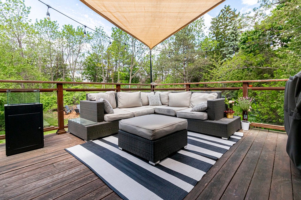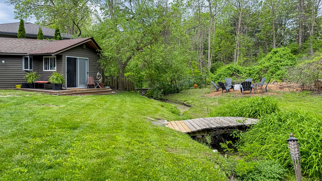 Dreaming of a home that feels like a cottage? This artful raised bungalow nestled in the desirable Morrison community of East Oakville is situated on a treed 52 x 132 x 190 x 120 pie-shaped treed lot complete with perennial gardens and a calming stream. The home exudes a year-round cottage ambiance and includes 3+1 bedrooms crafted for your comfort. The open-concept kitchen, equipped with stainless steel appliances, a coffee bar, and a pantry, is open to a living room and large dining room ideal for hosting family and friends. Natural light floods the main floor, thanks to two large windows and French doors that open to the stylish dining area. The upper level presents private bedrooms and a beautifully remodelled full bath, creating a peaceful haven. The fully finished lower level stands out. It features a second primary suite with a luxurious spa-like bathroom, a soaker tub, a walk-in closet, and a cozy family room- perfect for relaxation or multi-generational living with its entrance. Head outside to the expansive tiered cedar deck overlooking the secluded yard where you may spot an Oriole or a Cardinal in the trees. An insulated separate artist studio with vaulted ceilings and plumbing, ideal for your creative projects or could be used as an office or guest suite! Additional features include heated floors in the front entrance, updated windows and exterior from 2015, a re-insulated attic for comfort and extensive storage, flagstone walkways, perennial gardens, and a shed. If you love nature, this is the home for you! The neighbourhood is renowned for its top-notch public and private schools, all within walking distance! Enjoy lakeside parks and a lively downtown area with award-winning restaurants, many shops, and community events in the town square. This home artfully merges tranquillity with convenience- embrace the lifestyle you've always dreamed of!