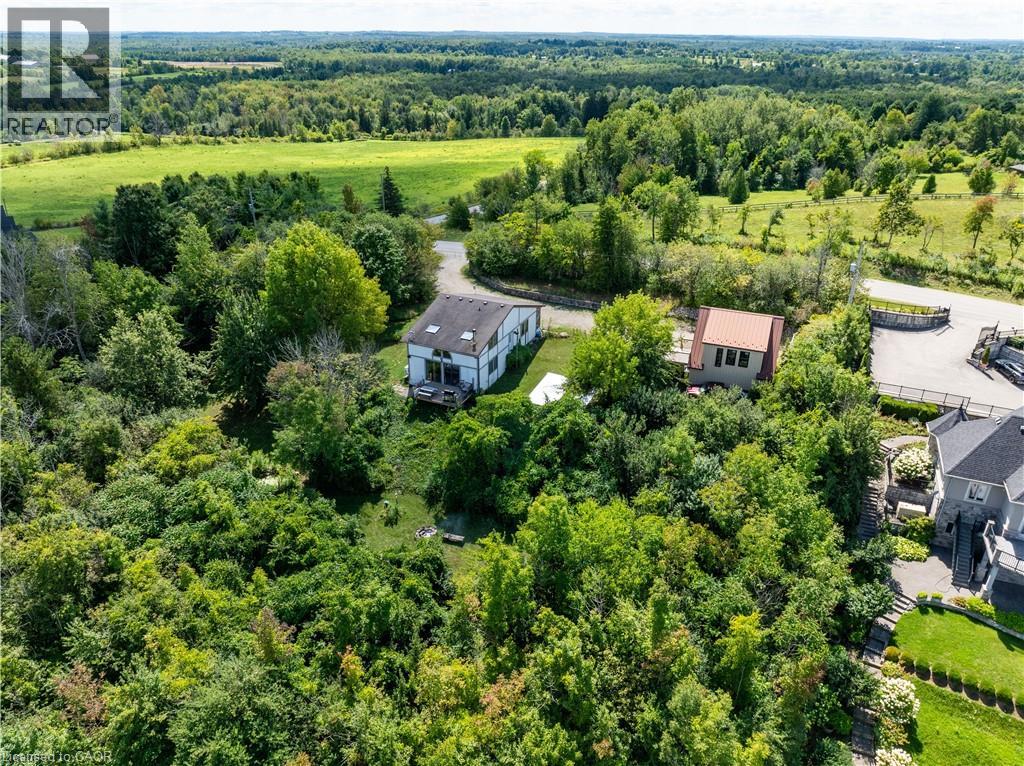 UNINTERRUPTED WATER VIEWS AWAIT YOU! Nestled atop one of the highest points in Puslinch and just minutes from the charming Campbellville equestrian community, this unique opportunity invites you to either build your dream home (initial drawings and survey available)or reimagine the existing structure on a generous 1-acre lot (225 x 194 feet). Experience a beautiful nature sanctuary with stunning views of Mountsberg Reservoir, which spans 472 acres outside your door. Each morning, wake up to vibrant sunrises illuminating your backyard. The recently constructed garage measures 24x28 ft and is fully insulated, featuring three layers of high-density foam beneath engineered wood siding. It is framed with sturdy 2x6 lumber, topped with a durable steel roof, and equipped with a 100 Amp electrical panel and an EV charger.With buried water and sewer lines running to the garage foundation, the upper level can easily be transformed into a workshop or studio apartment, enhancing the investment! This incredible setting isn't just a building lot; its also the perfect starter home for those dreaming of a country lifestyle that could become your family retreat. Currently, the property boasts a loft bungalow with an abundance of windows, a spacious great room, a luxurious kitchen ready for culinary adventures, and sleeping quarters with both a main floor bedroom and a whimsical loft bedroom. Theres also a wood stove, heat pumps, and AC. You'll also love the charming cordwood garden shed. Conveniently located close toHighway 401, commuting to Guelph, Burlington, Hamilton, and the GTA is easy. Experiences awaits nearby, including a boat launch where you can fish or paddle in your kayak or non-motorized boats. Additionally, you'll discover a variety of beautiful hiking trails and excellent fishing opportunities in the area, all surrounded by breathtaking scenery. Start planning your visit and be first in line for your new lifestyle and investment today! (id:4069)