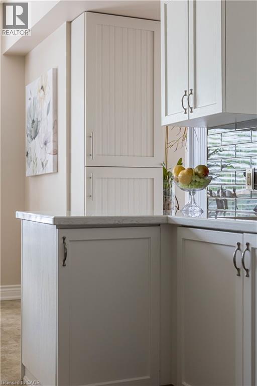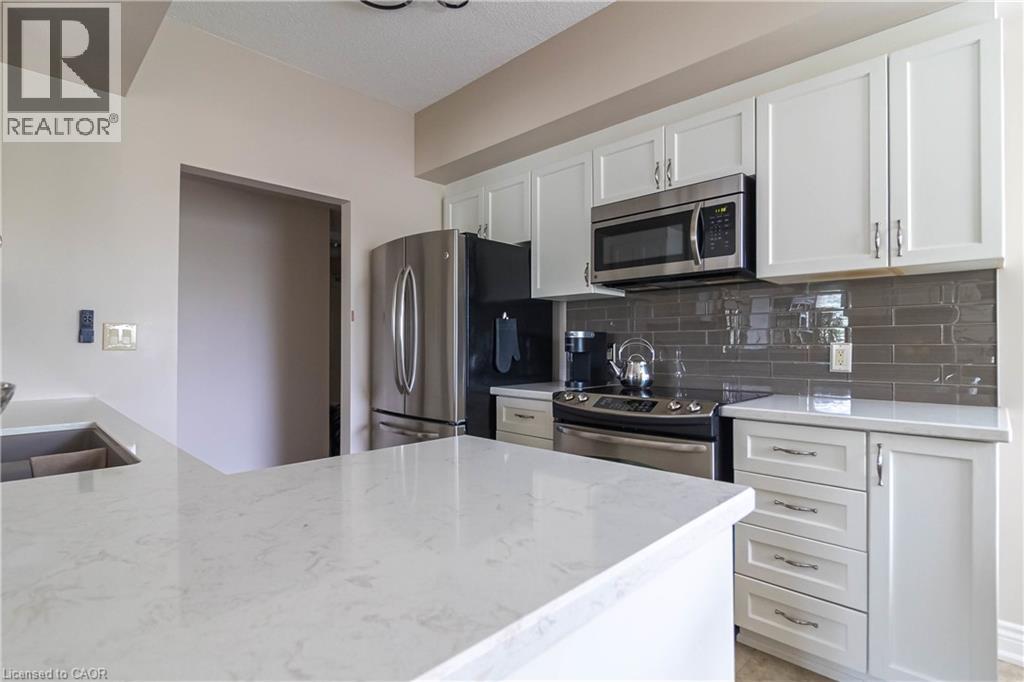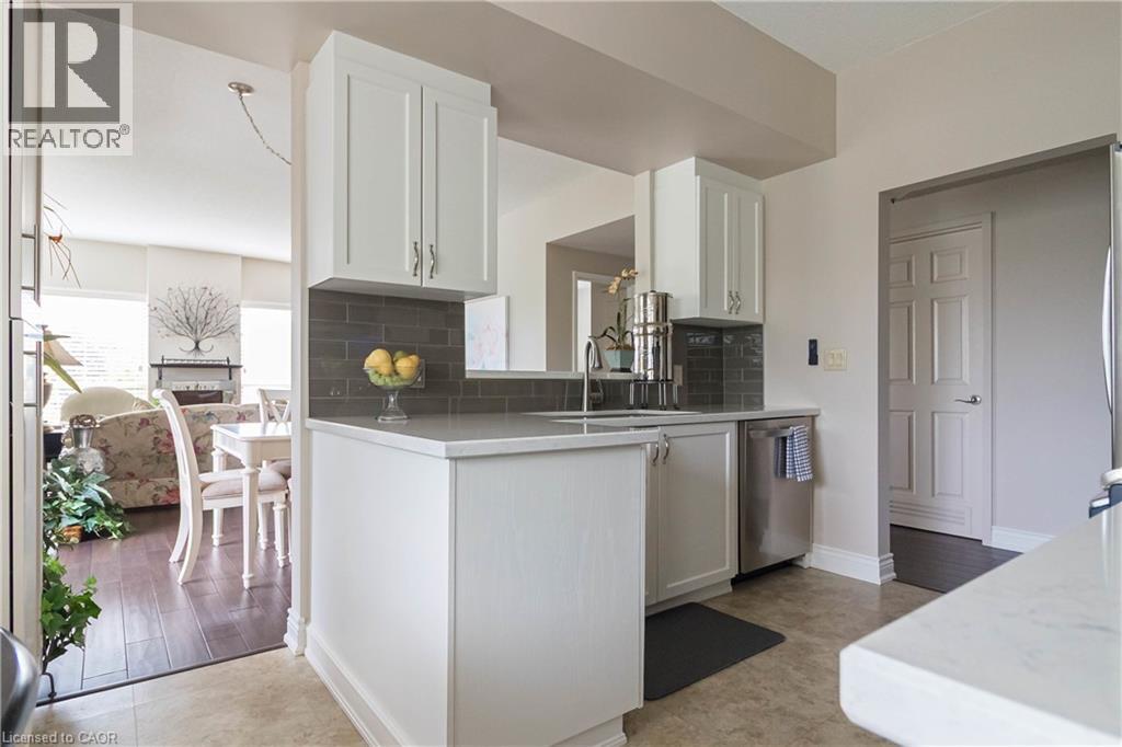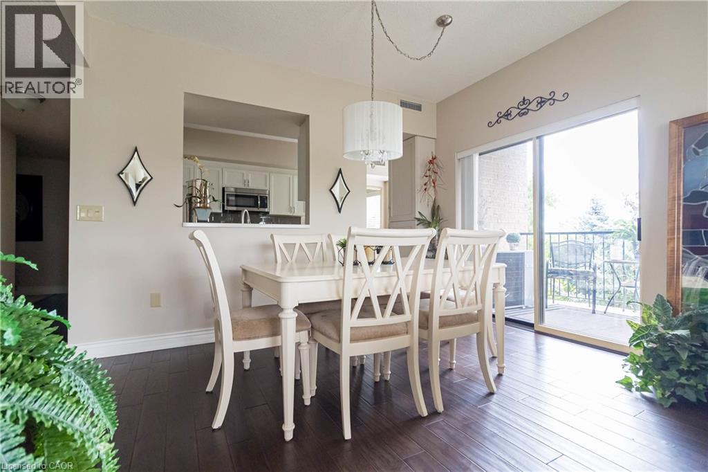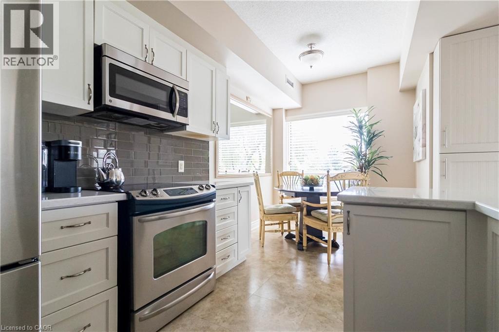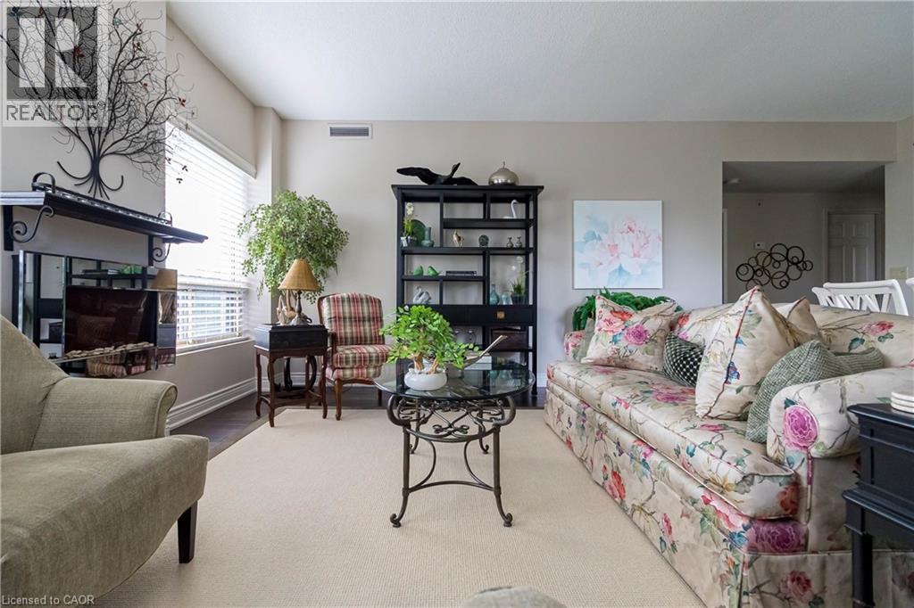 Welcome to the sought-after Chelsea Building in Burlington’s desirable Headon Forest community. This immaculately maintained, sun-filled 2-bedroom, 2-bath corner unit boasts an impressive 1,317 sq. ft. of living space with a bright southwest exposure. Step inside to discover an inviting, carpet-free open-concept design- illuminated by a wealth of large windows, 9-foot ceilings, quality laminate flooring, and neutral paint throughout. The beautifully updated kitchen features quartz countertops, glass subway tile backsplash, stainless steel appliances, an under-mount sink, crisp white cabinetry, and a pantry. The breakfast nook with an oversized window comfortably seats four. A convenient pass-through with a quartz ledge opens into the dining room, which leads to a curved balcony providing private vistas of mature blue spruce and maple trees. The spacious living room offers 3 large windows and an electric fireplace, creating a warm and airy space. Its primary bedroom retreat includes a 4-piece ensuite and walk-in closet, while its second bedroom is ideal for guests, a home office, or den, complemented by a 3-piece bathroom. This home also features recent mechanical upgrades: AC (2024), dishwasher (2023), and furnace (2022). Enjoy the convenience of 1 underground parking space and a locker on the same level as the unit. The well-managed building has recently refreshed its foyer and hallways, and offers fantastic amenities: a party/meeting room, exercise room, car wash, and ample visitor parking. All this in an unbeatable location- just steps to plazas, schools, and parks, close to Millcroft Golf Course, and with easy highway access. This unit is a true treasure that promises an extraordinary living experience! (id:4069)