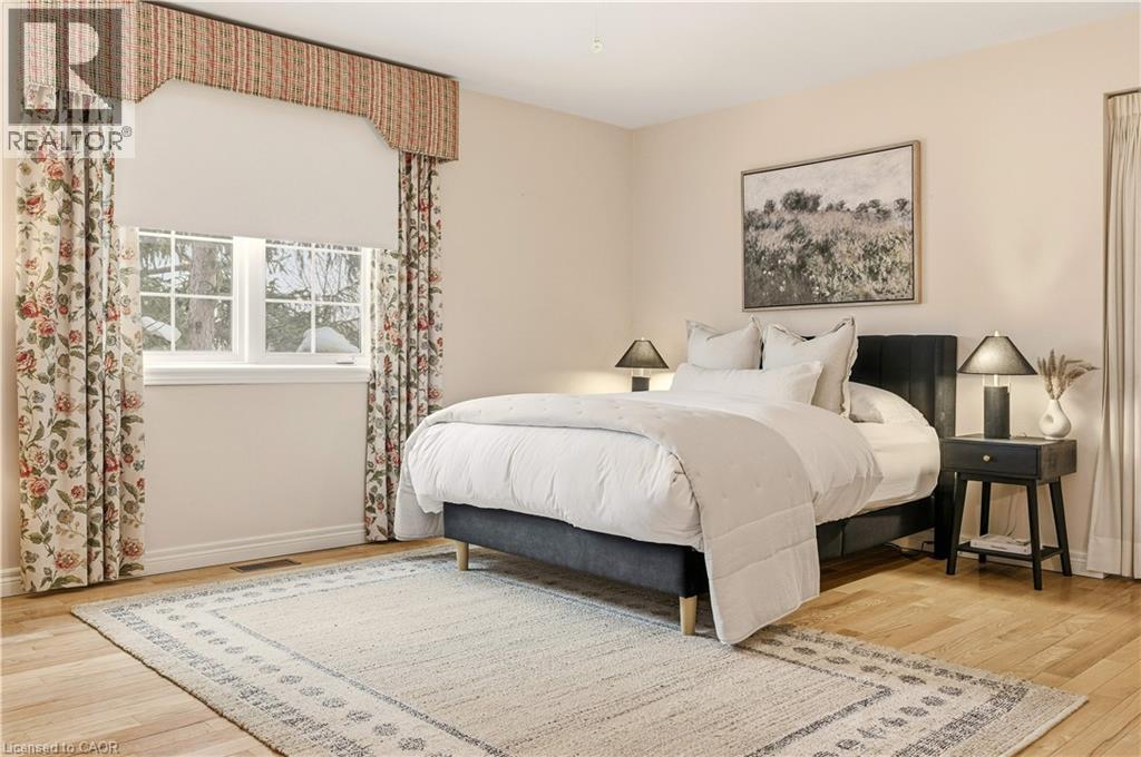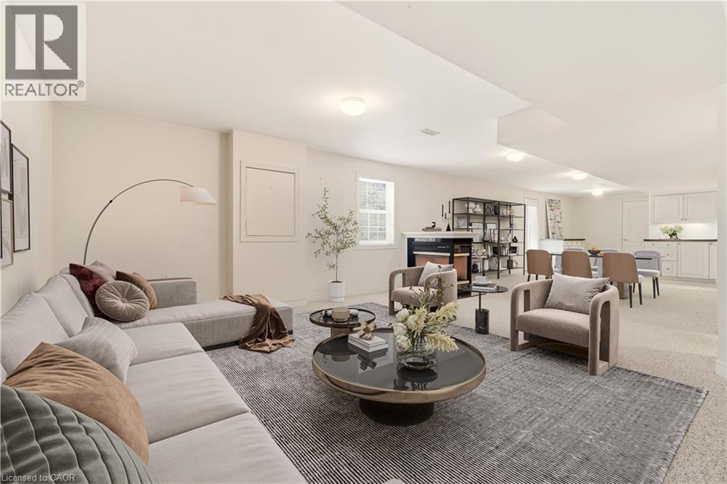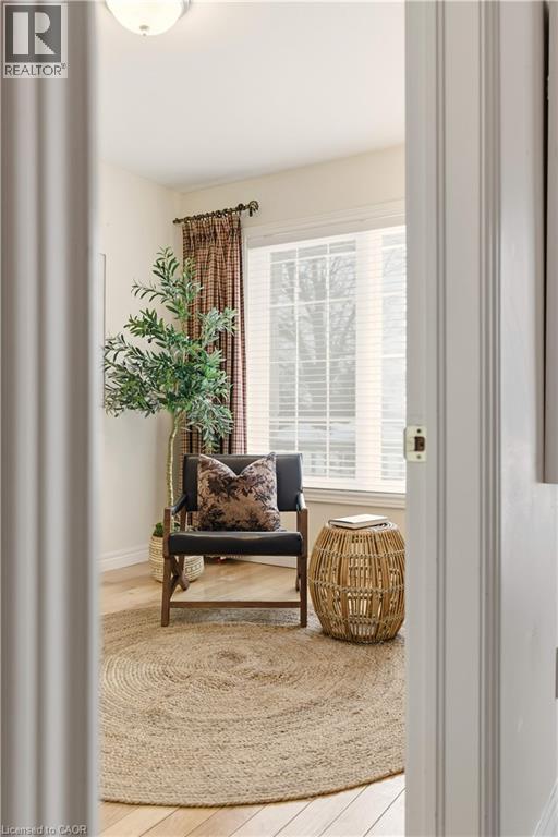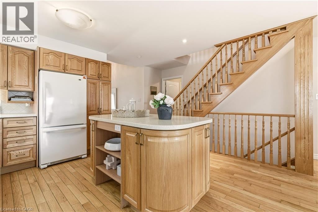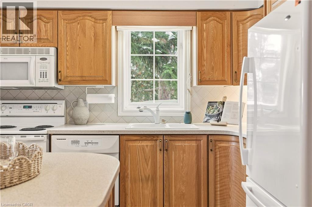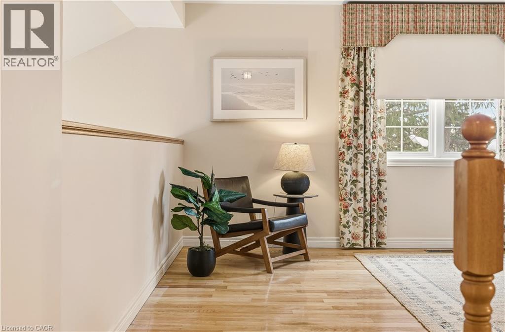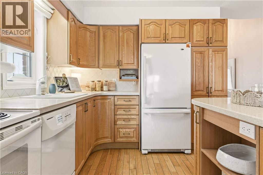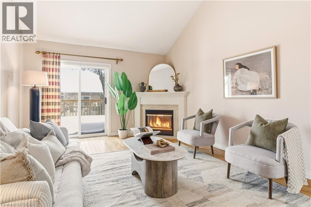 Imagine living in a charming loft bungalow townhome right in the heart of McGregor Village! This lovely end-unit 3+1-bedroom, 4-bathroom home is perfectly situated in Waterdown's lively, historic downtown, just steps from local attractions—shops, restaurants, and Memorial Park. This lovely townhome has 3 outside balconies and a walk-out lower level, making it a rare opportunity! Step into the spacious main level, where you’ll find a bright living and dining area with a walk-out to a sunny upper balcony, complete with an awning. Hardwood floors lead from there to a large open-concept kitchen with Corian countertops and a primary suite on the main floor, complete with a full ensuite. Just off the foyer, you’ll find a versatile front room with hardwood floors and a closet—ideal as a home office, den, or bedroom—plus a spacious 2-piece bathroom and easy access to laundry on the main level. The loft area can serve as a bedroom, media room, office, or studio and features 3 closets, including a walk-in, along with a full bath. The fully finished lower-level walk-out extends your living space with a triple-sided gas fireplace, a large rec room with an above-grade window, and a walk-out to a private deck and side yard. It also includes a guest bedroom with a 3-piece bathroom, kitchen cabinets that could double as a bar or kitchenette, and a workshop/storage area. Additionally, there’s a private driveway and an attached garage. This bright, spacious bungalow is ideal for anyone seeking a well-maintained home that combines comfort, convenience, and charm in one fantastic package! Located in a quiet section of the complex, this townhome features stone columns at the entrance and coach-style lanterns for street lighting. It boasts a serene backyard with views of mature trees—perfect for empty nesters or down-sizers looking to settle into the wonderful McGregor Village community! (id:4069)